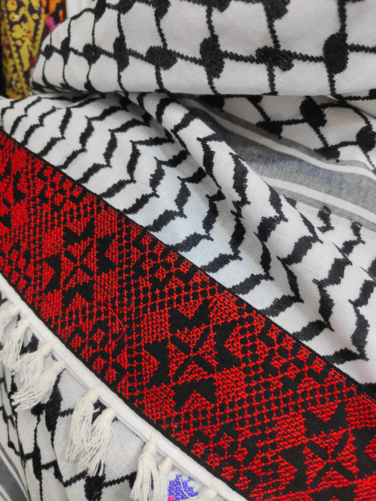 Palestinian embroidery Stitched and Surrounding Palestinian Keffiyeh